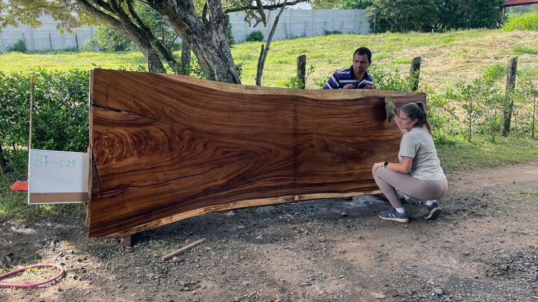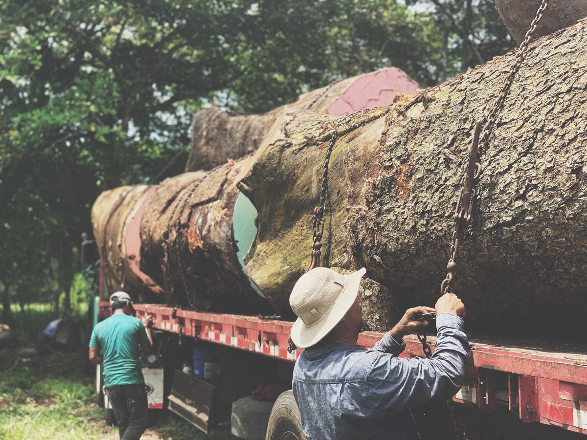 The MINAE (Ministry of Environment) conducts an examination of the designated area, and based on the outcomes, they may either grant or deny approval for tree harvesting. In the event of approval, MINAE stipulates a specific percentage of trees per hectare (10,000 m2) that are permissible for harvesting. Our founder, Bernardo Urbina, personally engages in the selection and approval process for Monkey pod and Parota logs, which he procures from local farmers situated in the rural regions of Costa Rica. Subsequently, following governmental approval and completion of requisite paperwork, the acquisition of a "yellow tag" permit is secured to facilitate the transportation of the logs to the mill.